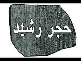 حجر رشيد كان مفتاح لغز اللغة الهيروغليفية. فقد عكف العالم الفرنسي شامبليون فترة طويلة على دراسة هذه النقوش الموجودة على الحجر.
